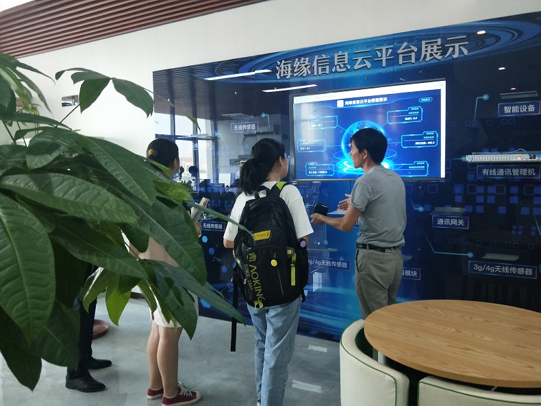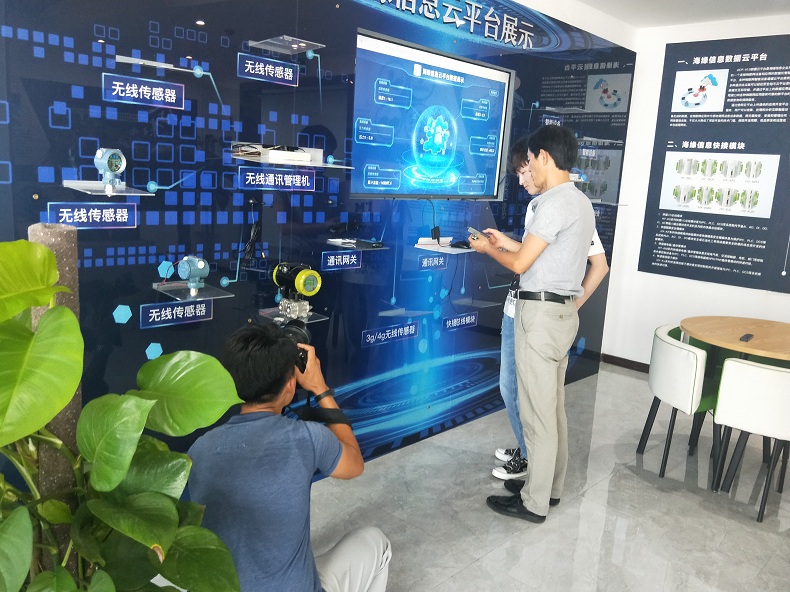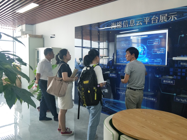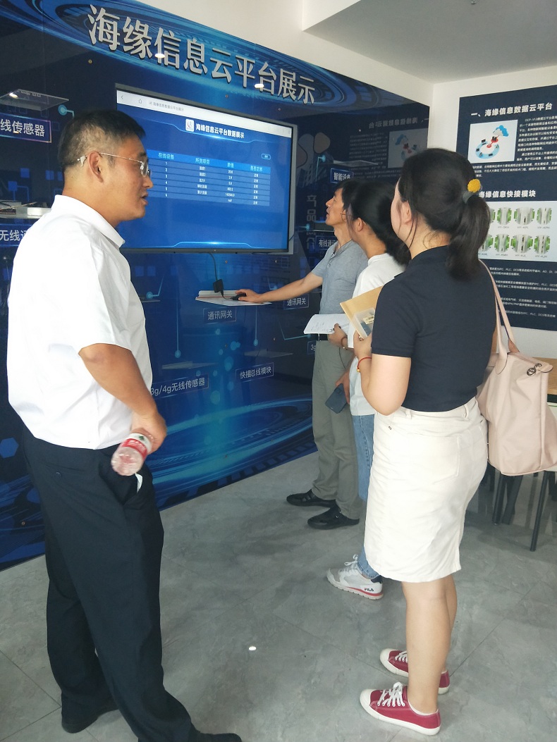见孙总跟两位记者都对我们的数据云平台这么感兴趣,我们高总就给大家讲道,这些设备是通过ModeBus协议将数据传输到海缘数据云平台上,从而实现对每台设备的运行情况、参数变化、峰值变化、曲线变化进行实时监控。高总还拿出设备内部的核心模块给大家看,并操作云平台给大家展示了数据的变化。
